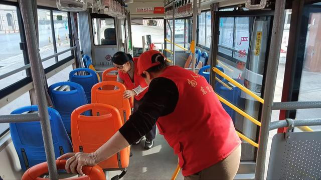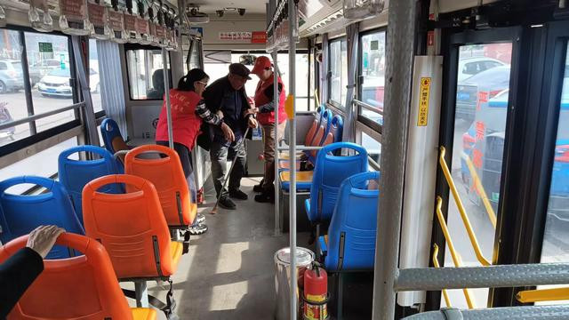 公交车到站后,志愿者们还主动打扫车厢,擦拭桌椅,为乘客营造干净整洁的乘车环境。公交司机见状,深受触动,用手机记录下这暖心一幕。